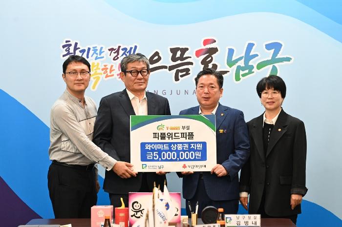 사)피플위드피플(이사장 김성진)은 2025년 10월20일 10시30분 회원사들과 회원들이 기부한 금액으로 상품권(오백만원)을 구입하여 남구지역 독거노인과